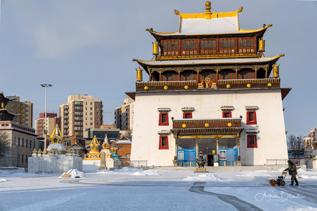 As I arrive in Ulan Batar the temperature is -27°C. The taxi’s windscreen is frozen from top to bottom, you can hardly see through. Even with the fan on super hot, only the bottom 20cm open up, just enough to see where we are going, luckily there is little traffic at this early hour. Welcome to Mongolia in winter !