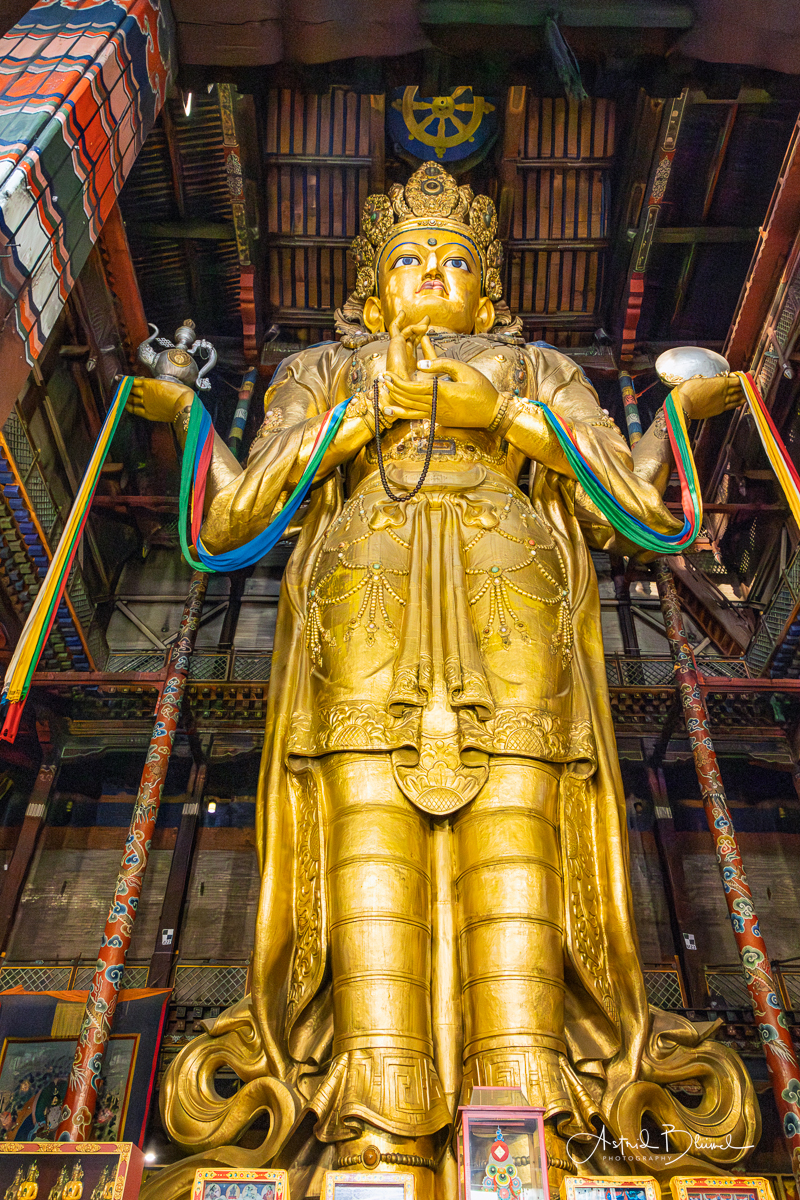 Sightseeing in the capital city. We go to Migjid Janraisig Datsan. A Buddha Temple complex, the oldest in town. Took us 75 min for 12km, traffic is an everlasting problem here. This was actually quite fast, in rush hour it takes much longer. Amazing such a culture clash, shiny modern buildings downtown, but in between there are lots of temples. This one is the biggest one, plus there are a lot of smaller buildings surrounding it. In the main building there is a big golden buddha of 25m high, surrounded by prayer bells and all the walls are lined with dozens of little buddhas.