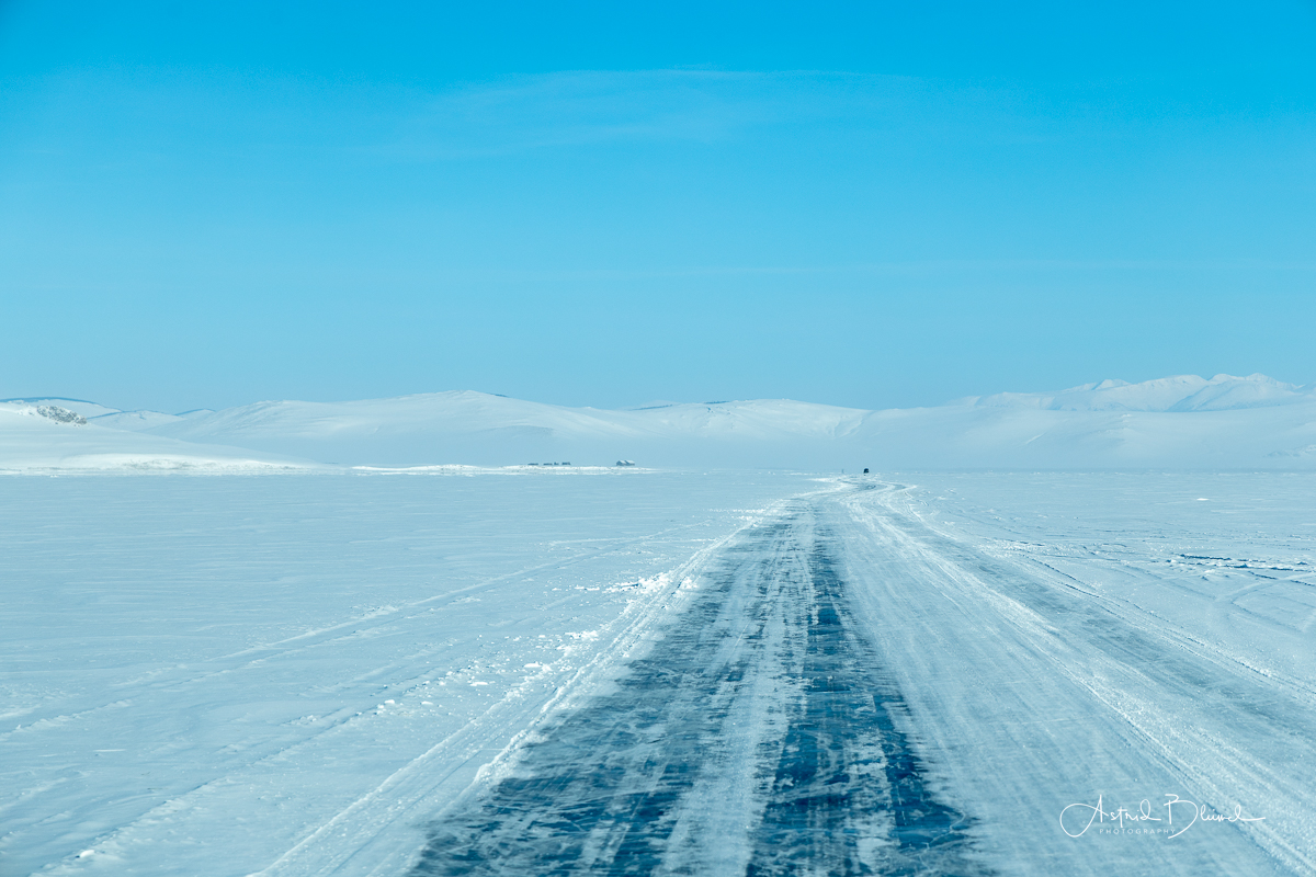 We drive for about 45min through endless white worlds with huge snowcapped mountain ranges in the distance. The road is extremely bumpy, it is not far but mostly we can only do 20km/h, except for the part where we drive over the frozen White Lake, nice and flat and like a highway. We are now officially „little ice road truckers“. We reach the town of White Lake or Tsaagaanur around 13:00 and go for lunch at a private house, first we get a really tasty noodle soup, then steamed dumplings filled with horse meat, best meal yet on this tour.
